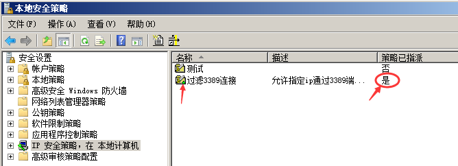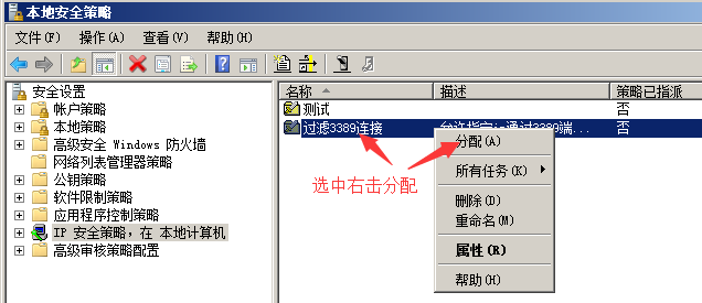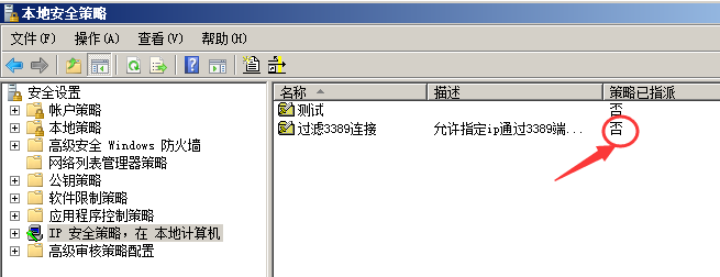 無(wú)法遠(yuǎn)程連接到服務(wù)端,我們?cè)侔逊?wù)端ip安全策略這是成未分配,再測(cè)試一下客戶端是否能遠(yuǎn)程到服務(wù)端。