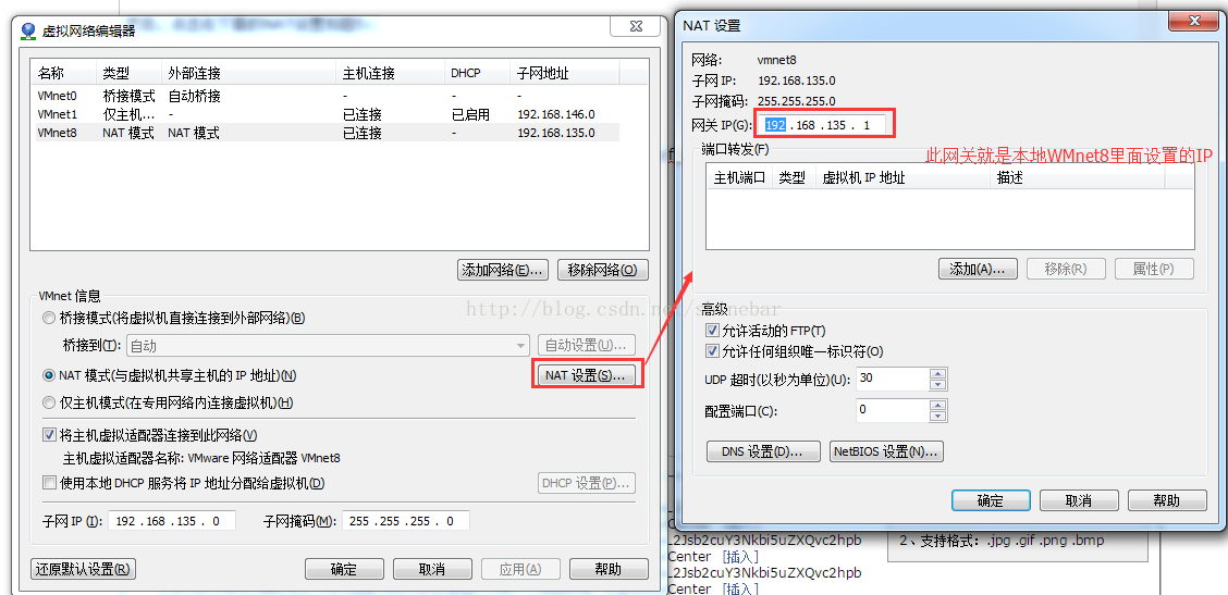 一下步配置虛擬機(jī)的虛擬網(wǎng)絡(luò)編輯器NAT模式下配置: