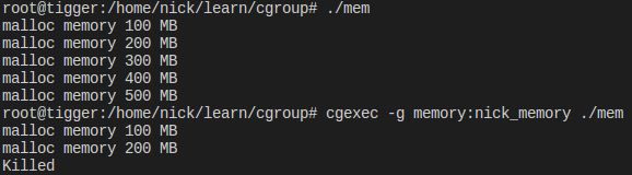 $ cgexec -g memory:nick_memory ./mem