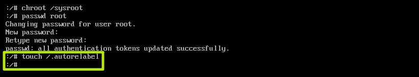 4.由于selinux開啟著的需要執(zhí)行以下命令更新系統(tǒng)信息,否則重啟之后密碼未生效