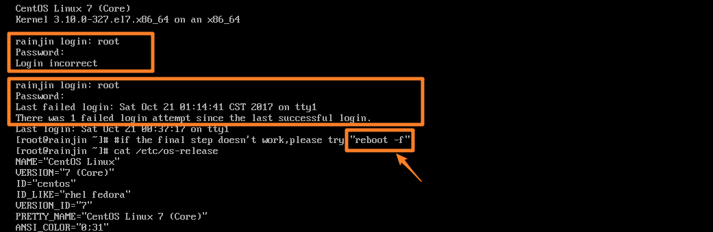 第八個(gè)里程碑 -- 用 " reboot -f " 重啟你的系統(tǒng);