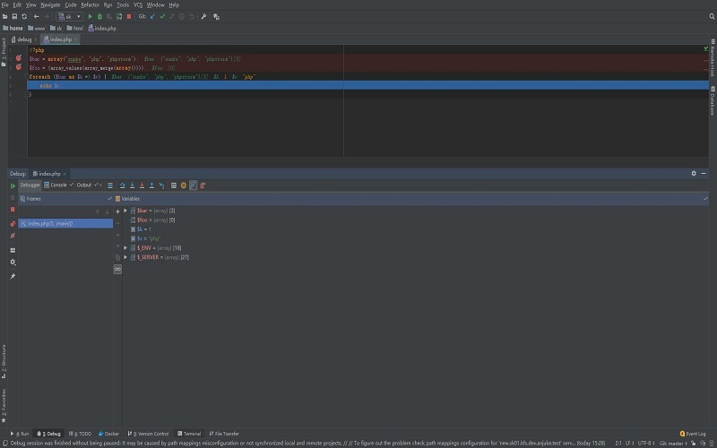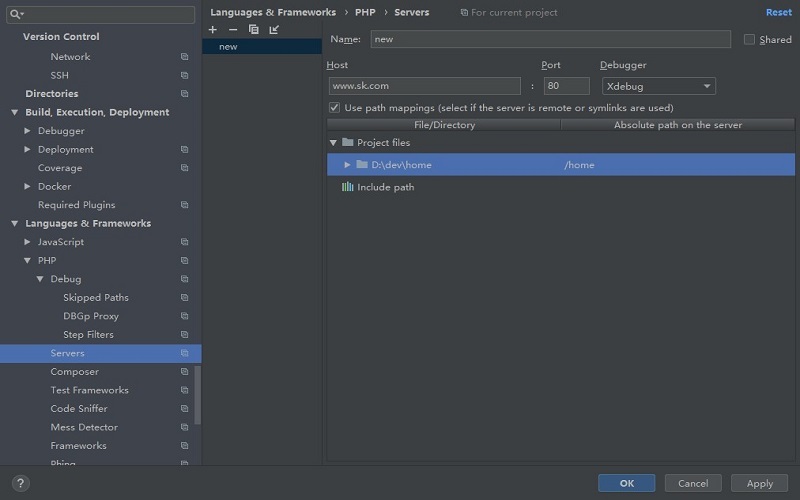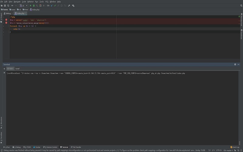 連接至虛擬機(jī),執(zhí)行腳本(/home/www/sk/html/index.php),ip替換成phpstorm所在主機(jī)的ip