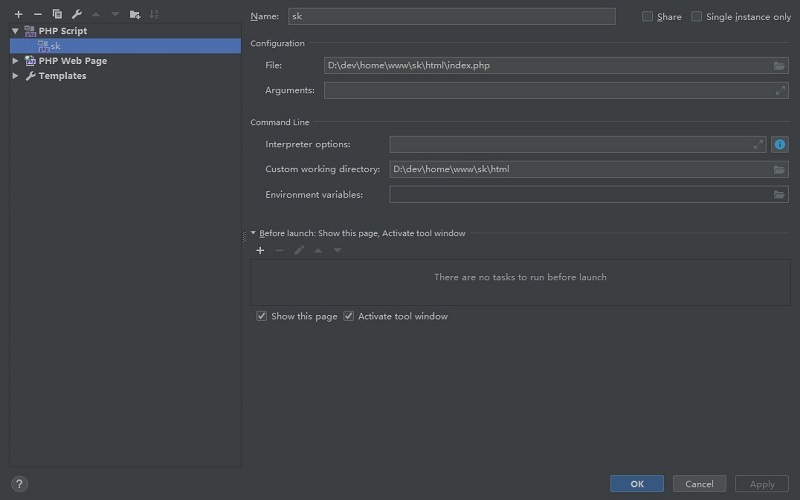配置debug,由于是命令行執(zhí)行腳本,選擇php script