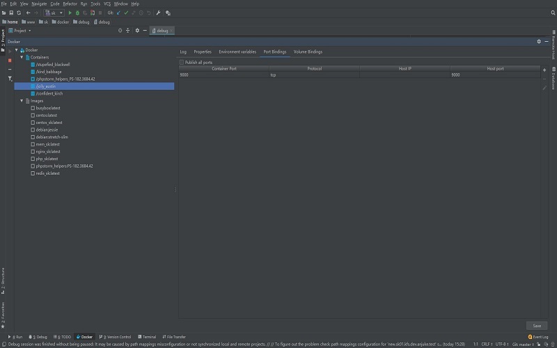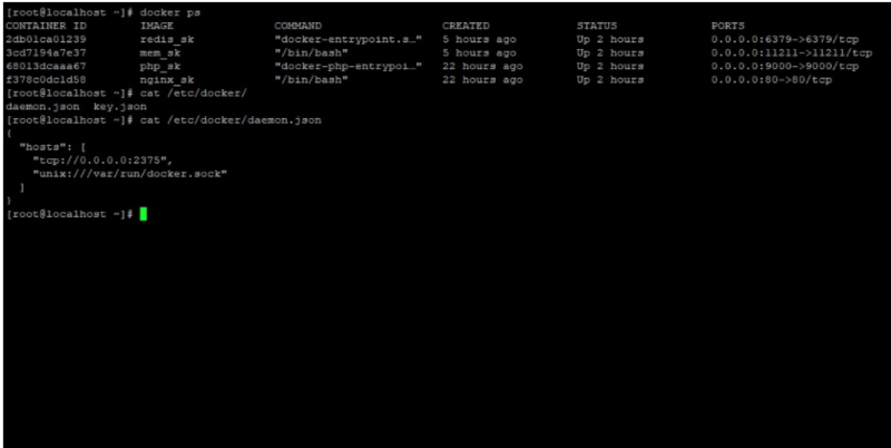 這是運(yùn)行的容器,/etc/docker/daemon.josn為使用api訪問docker的配置(目的是使phpstorm能訪問到容器)