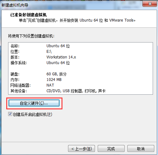 3.7 返回上一頁,點擊完成。等待VMware自動安裝Ubuntu系統(tǒng)