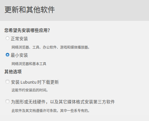 選擇漢語(yǔ),另外,為了安裝更快完成,取消選擇安裝時(shí)更新,選擇最小安裝(如果沒(méi)其他需求,全部默認(rèn)即可):