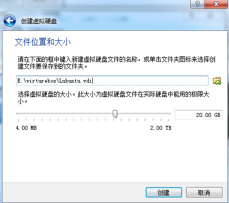 設(shè)置虛擬機(jī)鏡像文件在真實(shí)環(huán)境下的位置以及大小,無(wú)特殊要求默認(rèn)選項(xiàng)即可,設(shè)置完成,選擇“創(chuàng)建”,這是本人的設(shè)置: