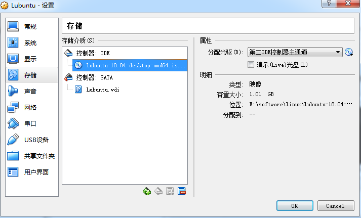 回到Virtualbox界面,選擇“設(shè)置”——》存儲(chǔ),掛載下載好的鏡像文件,確認(rèn):