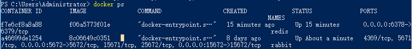 然后來(lái)啟動(dòng)redis容器,并通過(guò)docker ps查看啟動(dòng)