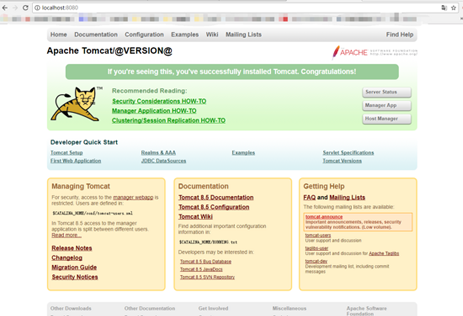 此時便可在browser上進行訪問了,輸入localhost:8080,出現(xiàn)Tomcat啟動后的經(jīng)典畫面。