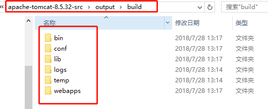 運行結束之后,會在源碼包根目錄下的 output/build 中生成catalina-home所需的文件夾;將這些復制到源碼包同級的catalina-home中。