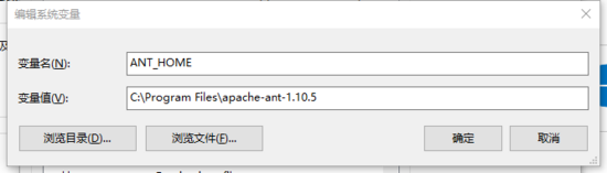 2.apache-ant-1.10.5(用的最新版)下載并安裝:Tomcat源碼默認采用的是ant編譯;安裝好以后配置環(huán)境變量