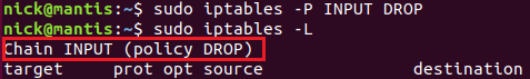 $ sudo iptables -A INPUT -m state --state RELATED,ESTABLISHED -j ACCEPT