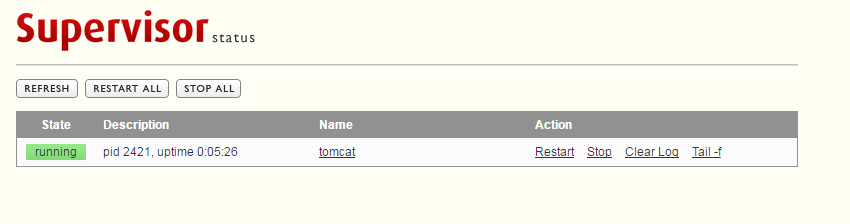 上圖中的tomcat就是我們在配置文件中[program:tomcat]指定的名字。