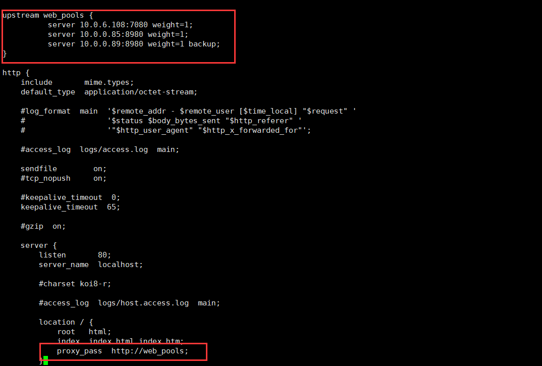 將server節(jié)點下的location節(jié)點中的proxy_pass配置為:http:// + upstream名稱即可