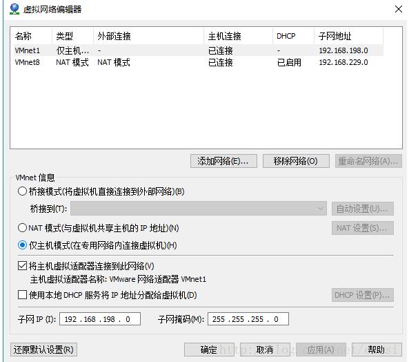 4、VMware虛擬網(wǎng)絡(luò)編輯器VMnet1設(shè)置成如下圖所示,與VMware Network Adapter VMnet1保持一致