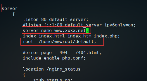 首先在我們的代碼段中找到server_name這一項然后把后面的域名改成我們要綁定的域名即可