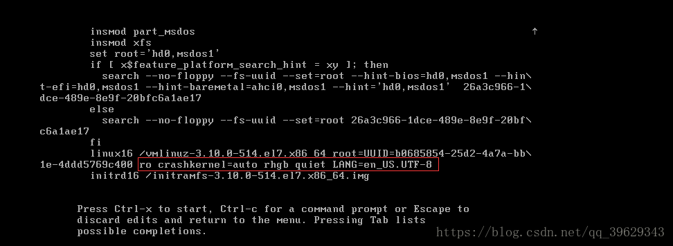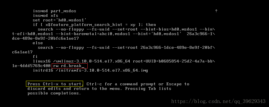 2.在linux16這一行,將紅框內(nèi)的內(nèi)容改成rw rd.break