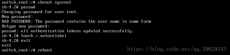 # chroot /sysroot //進(jìn)入系統(tǒng)的根目錄