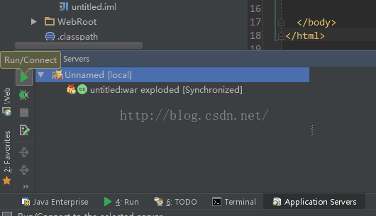8> 在主界面中 Application Servers 中就可以看到部署的工程,點擊 Run/Connect 就可以運行 Tomcat 服務(wù)器