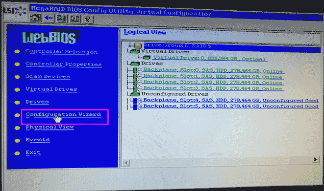 10、把前5塊硬盤配置RAID5,選擇Configuration Wizard