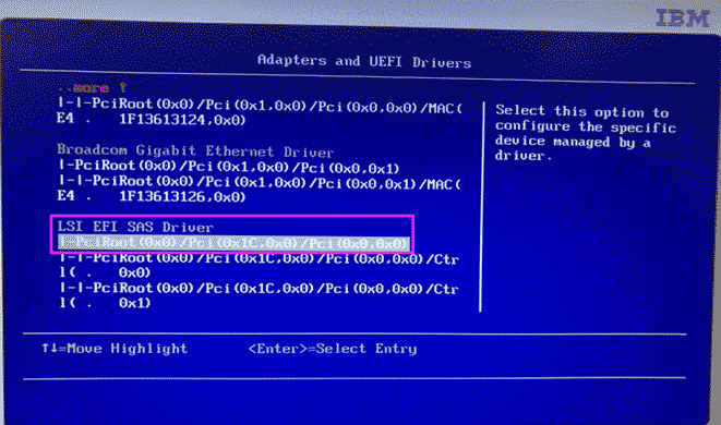 4、選擇 LSI EFI SAS Driver 下面選項(xiàng) PciRoot選項(xiàng)