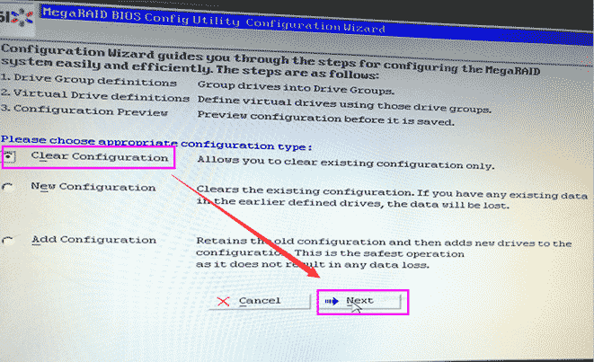 7、清除原來磁盤的相關(guān)信息,選擇 Configuration Wizard
