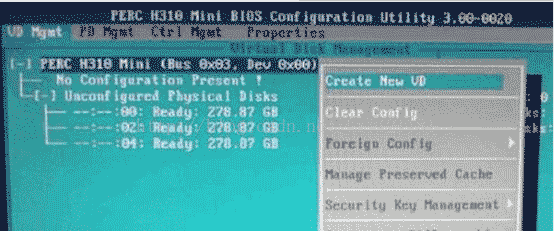 按CTRL+N切換到 PD MGMT菜單,可以看到磁盤的狀態(tài)為online。