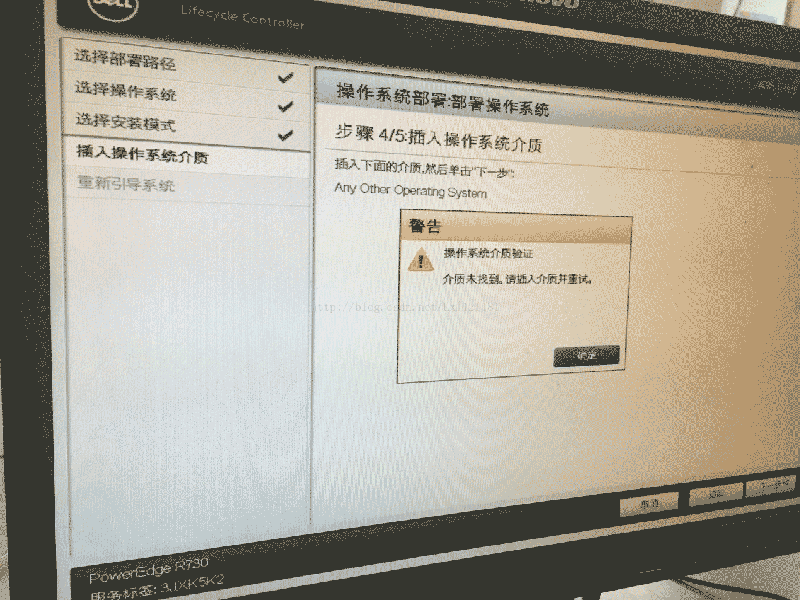 1.我遇到的第一個問題是部署os的時候提示無法在第四步系統(tǒng)介質(zhì),如果她有下列提示