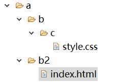 如圖:a文件夾下有b文件夾和b2文件夾,style.css在b文件夾下的c文件夾里,index.html在b2文件夾里。