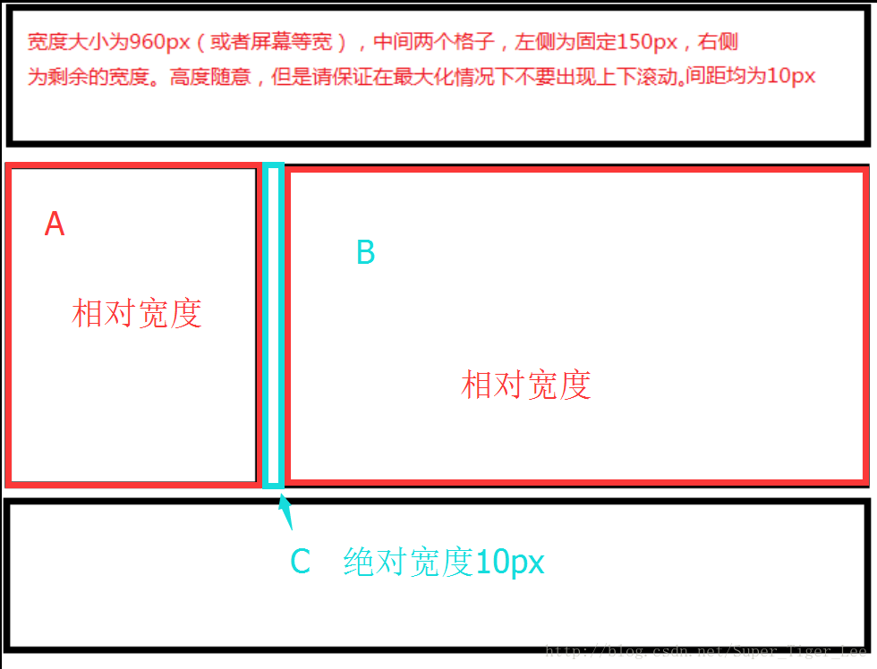 如果只關(guān)注相對寬度,那么很簡單,令左邊格子的寬度為30%(舉例),右邊各自的寬度為70%即可;如果只關(guān)注絕對寬度,那么更簡單,令中間的距離為10px即可。但是同時要滿足時怎么辦呢?難不成要寫 width:(inherit-10px)*30% 么?