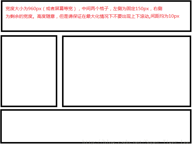 盒式模型是css布局的基本功,大家一定要對其有深刻的理解,才應(yīng)用在各種變形上。完成這道題還需要對margin、padding(雖然這道題沒有用到)、border以及div的關(guān)系有相當(dāng)?shù)睦斫?,今天我就不再多講了,下次有時間再說。