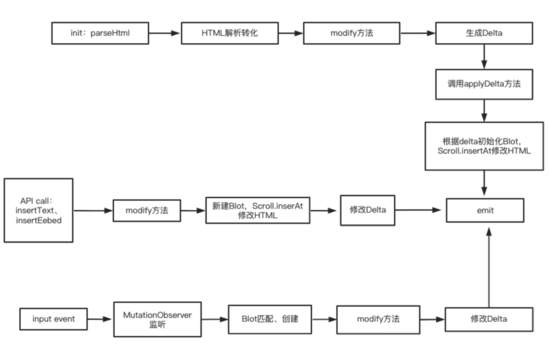 2、Input Event:用戶輸入和編輯操作,通過MutationObserver監(jiān)聽處理,更新delta。