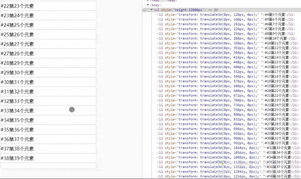 list.push({ id: i, text: '第' + (i + 1) + '個(gè)元素', top: i * lineHeight, bottom: (i + 1) * lineHeight })