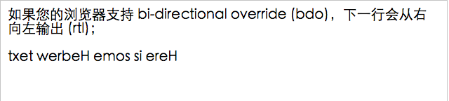 - 如果您的瀏覽器支持 bi-directional override (bdo),下一行會從右向左輸出 (rtl);
