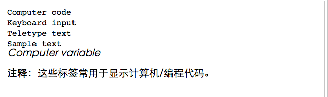 - <b>注釋:</b>這些標(biāo)簽常用于顯示計算機(jī)/編程代碼。