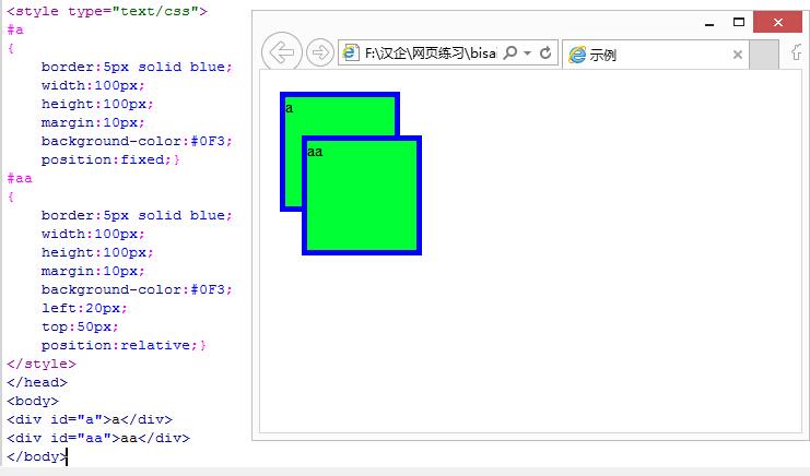在上面relative的示例中,我們看到了aa遮住了a,這是因?yàn)楹髮懘a的顯示級(jí)別越靠前,那么在不改變代碼順序的情況下如何讓a蓋住aa。如下: