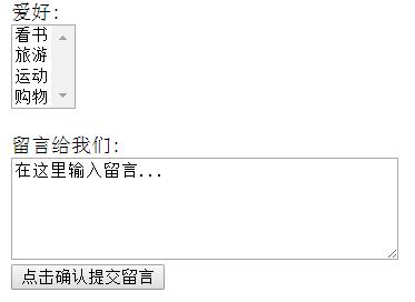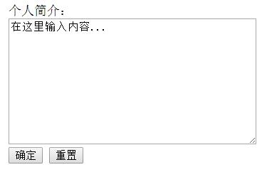 當(dāng)用戶需要在表單中輸入大段文字時,需要用到文本輸入域。語法: <textarea rows="行數(shù)" cols="列數(shù)">文本默認(rèn)值</textarea>