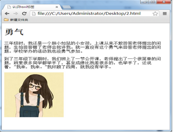 (1)“勇氣”是網(wǎng)頁內(nèi)容文章的標題,<h1></h1>就是標題標簽,它在網(wǎng)頁上的代碼寫成<h1>勇氣</h1>。