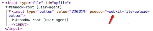 簡單的HTML結(jié)構(gòu)修改樣式完全是依賴于::-webkit-file-upload-button這個偽元素,針對這個偽元素的樣式做相對應的修改即可了,因為這個是一個普通的按鈕元素而已。這個按鈕元素如果通過展示shadow DOM的方式來查看的話,我們會更清晰。