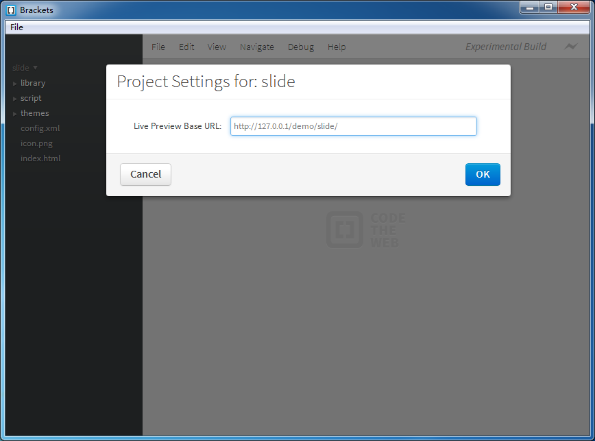 如上圖,設(shè)置為http://127.0.0.1/demo/slide時(shí),在瀏覽器預(yù)覽時(shí),會(huì)通過(guò)web地址打開(kāi)相應(yīng)的頁(yè)面。
