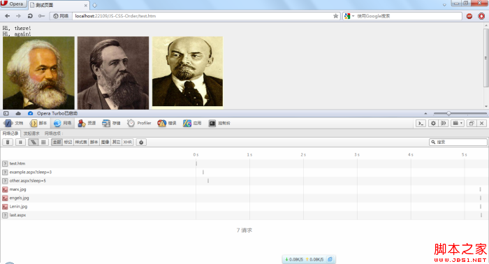 經(jīng)過在Opera中測(cè)試,發(fā)現(xiàn)Opera瀏覽器比較“守規(guī)矩”,所有的資源都是按順序加載的,并沒有出現(xiàn)所謂的預(yù)先加載,下面是一張總的效果圖: