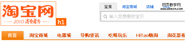 現(xiàn)在很多網(wǎng)站(包括淘寶、新浪、搜狐等知名網(wǎng)站),都喜歡把h1用在LOGO上, 如圖:
