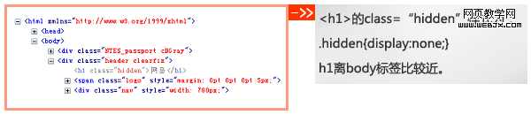 網(wǎng)易將h1設(shè)置了display:none樣式,使其隱藏起來,這樣既解決了h1不知道放哪里的矛盾又起到了SEO優(yōu)化的作用,可謂一箭雙雕。