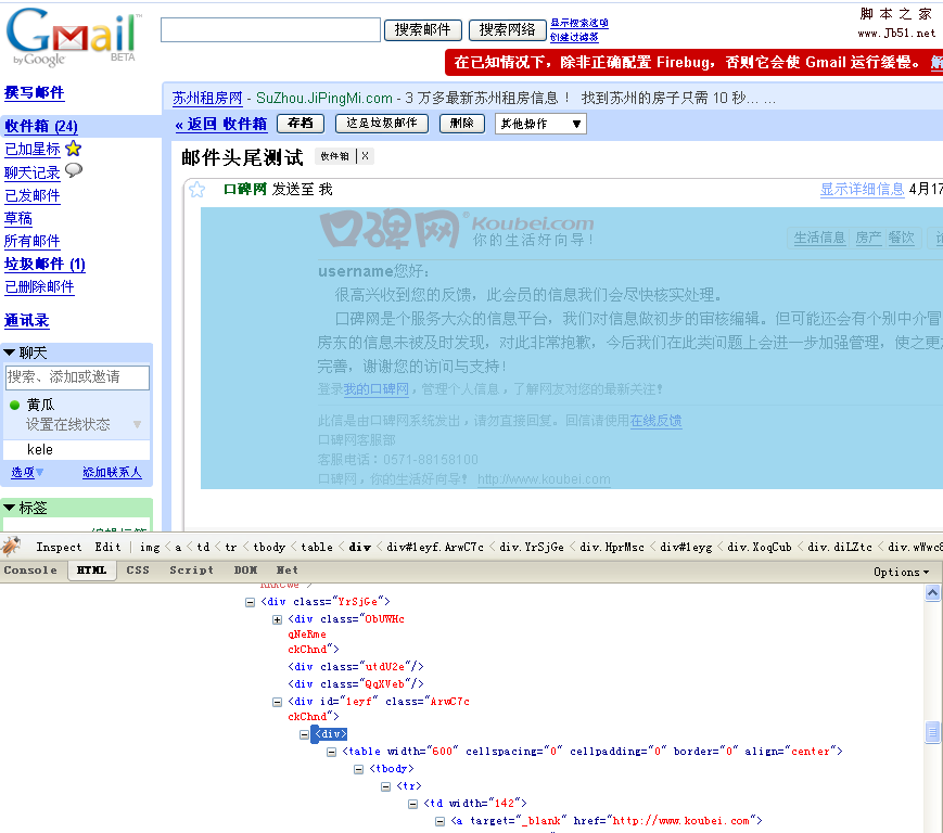 第一類包括gmail、hotmail、sohu,這類郵箱,郵件內(nèi)容是被布局在整個郵箱頁面中的某個div中。如圖: