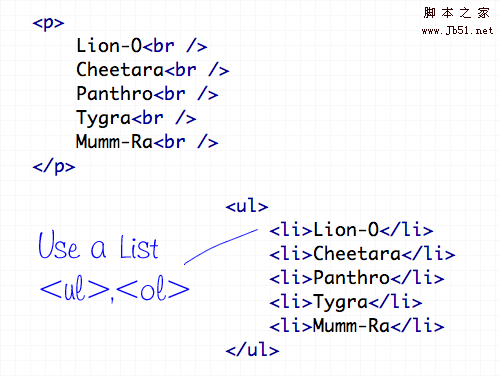 <br />換行標記只應該用于插入是在第一個文本流換行符敲到一個新行一個特別字了。它不應該被用來制造元素之間的差距,而是分裂成不同的段落,或調整的幅度CSS樣式的文本。