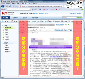 如果延續(xù)使用網(wǎng)頁的960/950px標(biāo)準(zhǔn)寬度,則勢必會造成郵件一部分內(nèi)容被遮蓋住,這樣,就產(chǎn)生了橫向和縱向的兩個滾動條,不方便于客戶瀏覽;