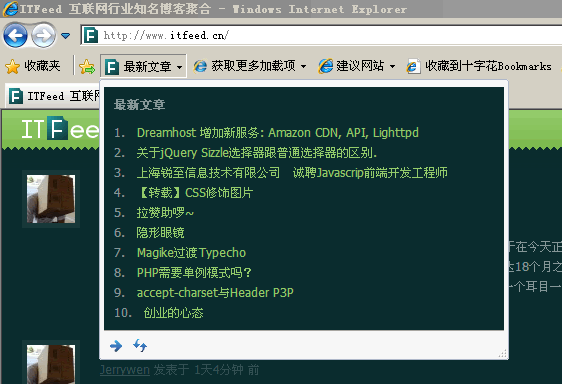 巨人網(wǎng)絡(luò)通訊聲明:本文標(biāo)題《Web Slices是什么》,本文關(guān)鍵詞 Web,Slices,是什么,Web,Slices,;如發(fā)現(xiàn)本文內(nèi)容存在版權(quán)問題,煩請?zhí)峁┫嚓P(guān)信息告之我們,我們將及時(shí)溝通與處理。本站內(nèi)容系統(tǒng)采集于網(wǎng)絡(luò),涉及言論、版權(quán)與本站無關(guān)。