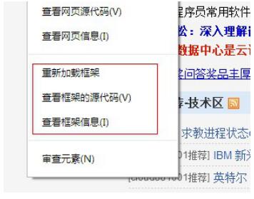 瀏覽頁(yè)面中的框架時(shí),在框架頁(yè)面內(nèi) 點(diǎn)擊右鍵,會(huì)多出框架的信息。