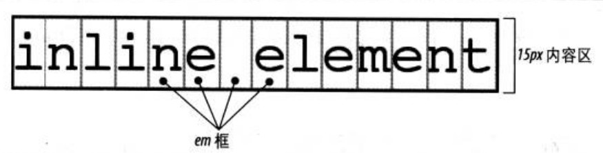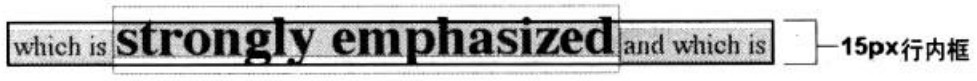 對于行內(nèi)非替換元素或匿名文本某一部分,font-size和font-family確定了內(nèi)容區(qū)的高度。在宋體情況下,如果一個(gè)行內(nèi)元素的font-size為15px,則內(nèi)容區(qū)的高度為15px;而在其他字體情況下,內(nèi)容區(qū)的高度并不等于字體大小